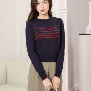 Áo len cổ tròn nữ dệt họa tiết ngang ngực