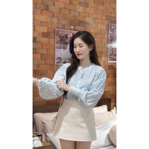 Áo Sơ Mi Đũi Kiểu Nữ Xếp Ly Cổ Tàu sơ mi Tay Bồng Xuyên Thấu Nhẹ Nữ Tính