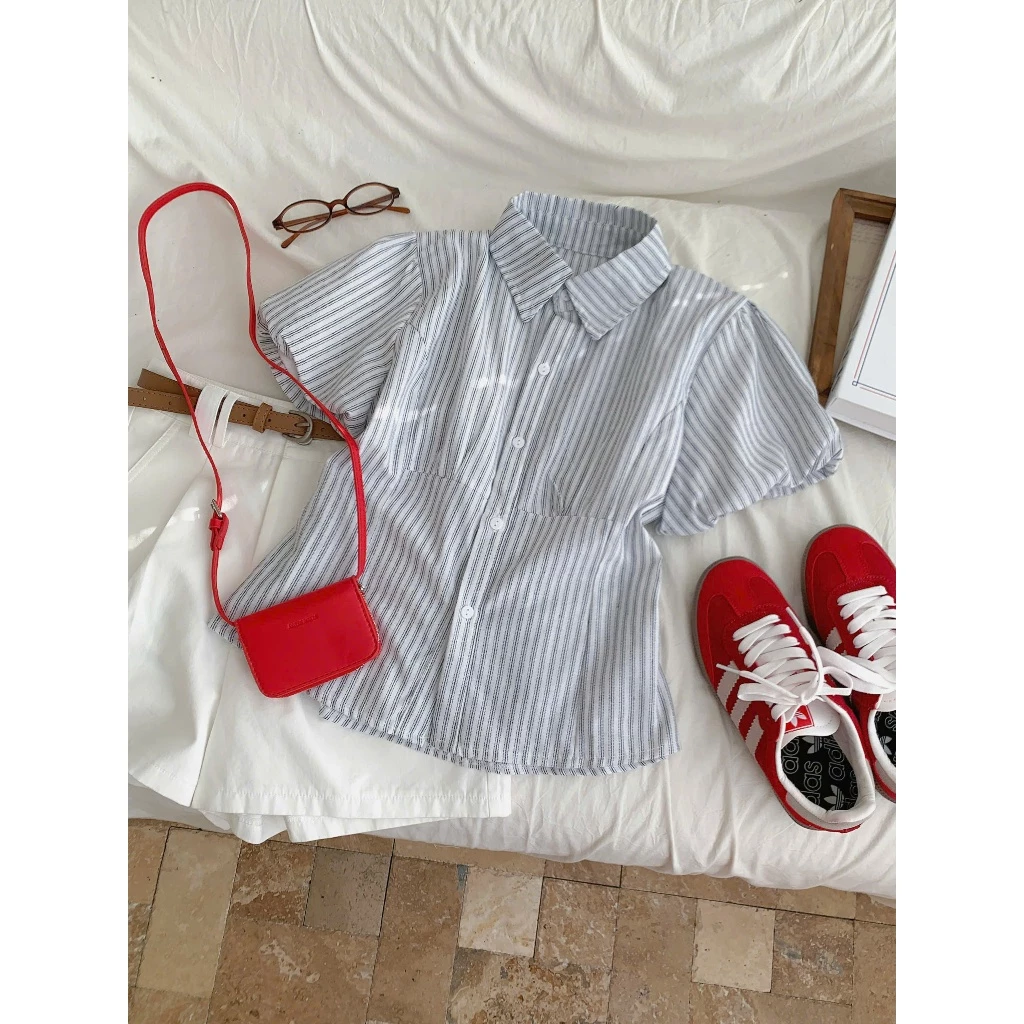 Áo sơ mi kẻ sọc tay bồng chiết eo 12 THÁNG SÁU – MA9579